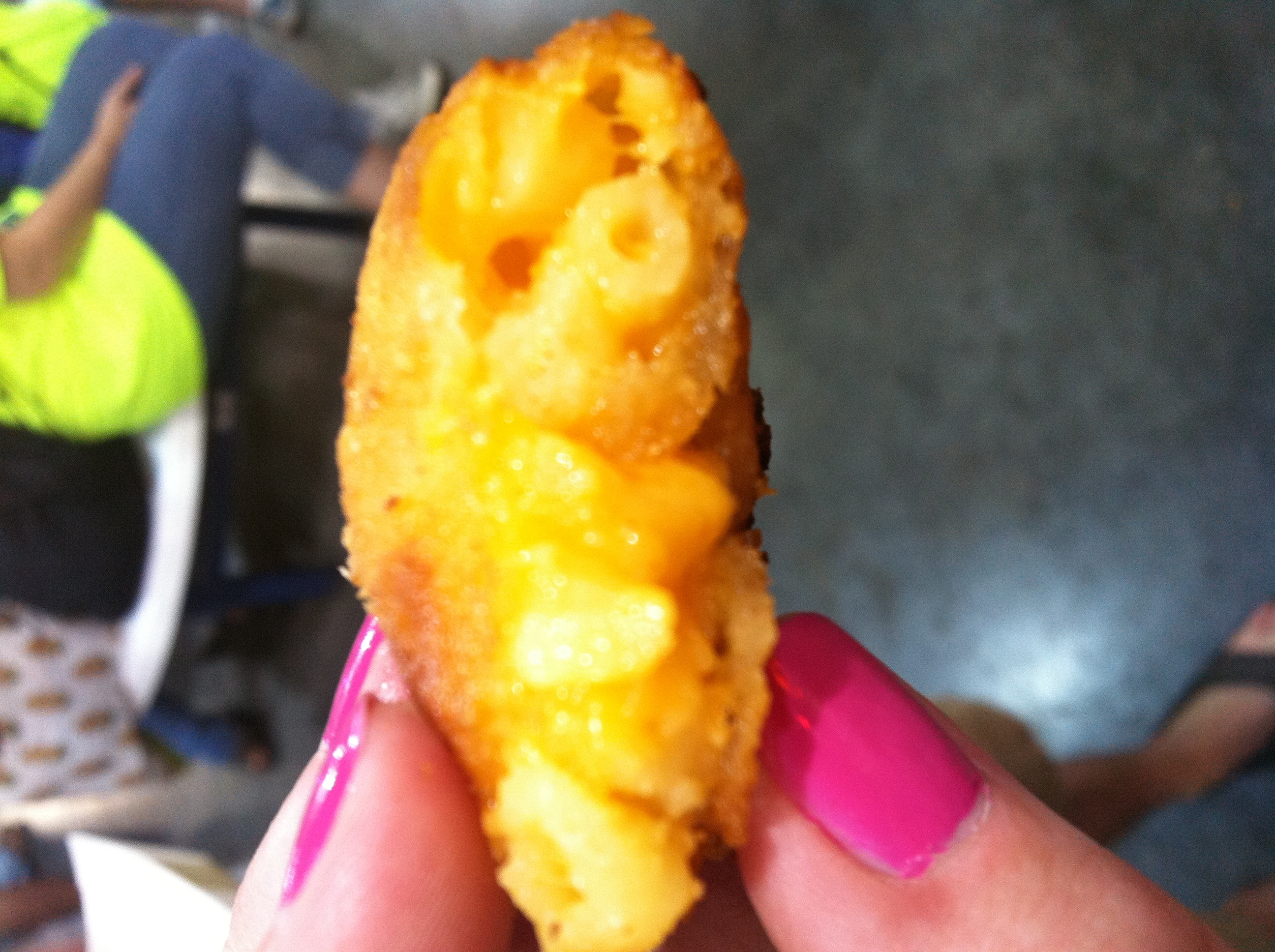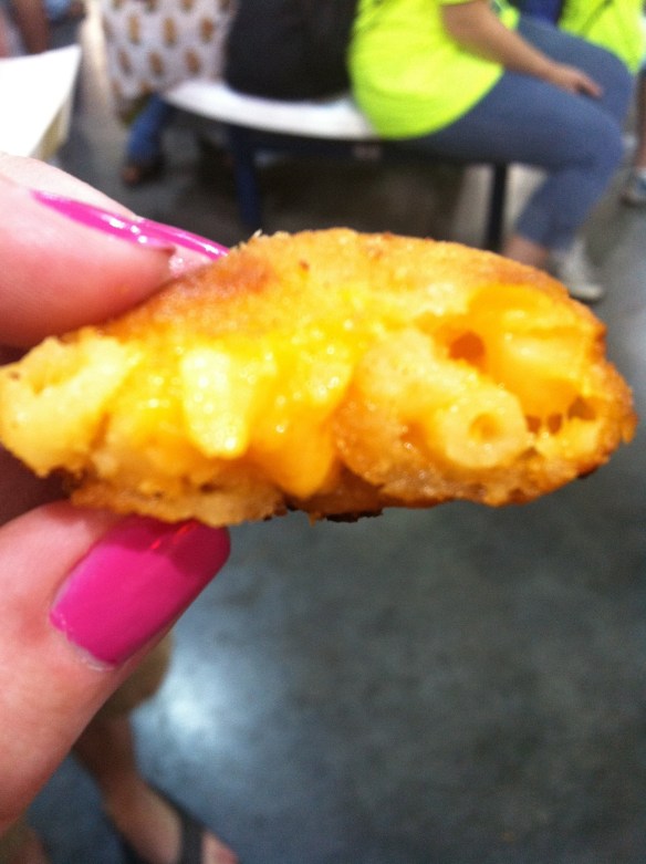 That said, once I tried it, I really liked it. The mac and cheese itself wasn’t anything to write home about, but the fried outer layer had a wonderful crunch that added a lot to the flavor and texture of this. If you’re looking for a fried cheese dish at the fair, this would be a great alternative to the Mouse Trap cheese curds which are delicious, but a bit greasy and salty to eat comfortably in one sitting.