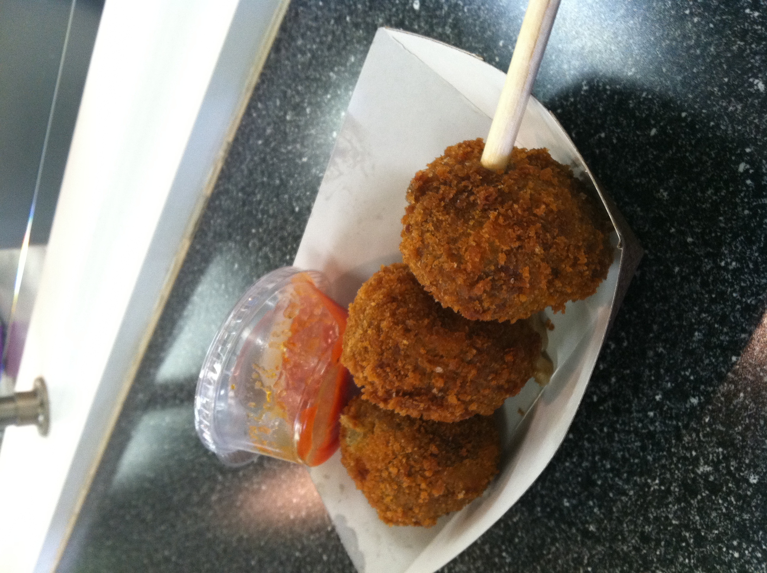 Be warned, the line for this is LONG. You’ll wait in one line to order, and then hop in another to collect the dough, but it is worth it. This was probably the most popular item at the fair based on wait time and the comments of the frazzled guy working the register. They can’t make it fast enough. If you want fresh, hot, right out of the fryer cookie dough, that is exactly what you will get here.