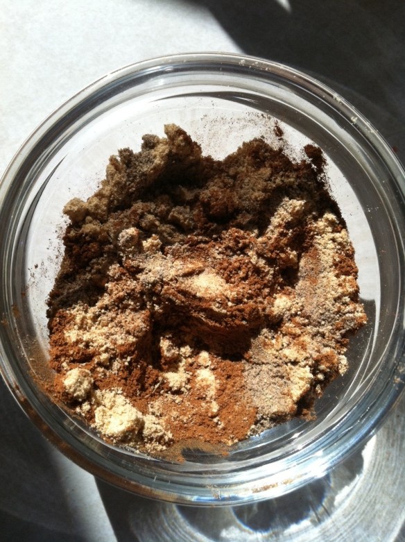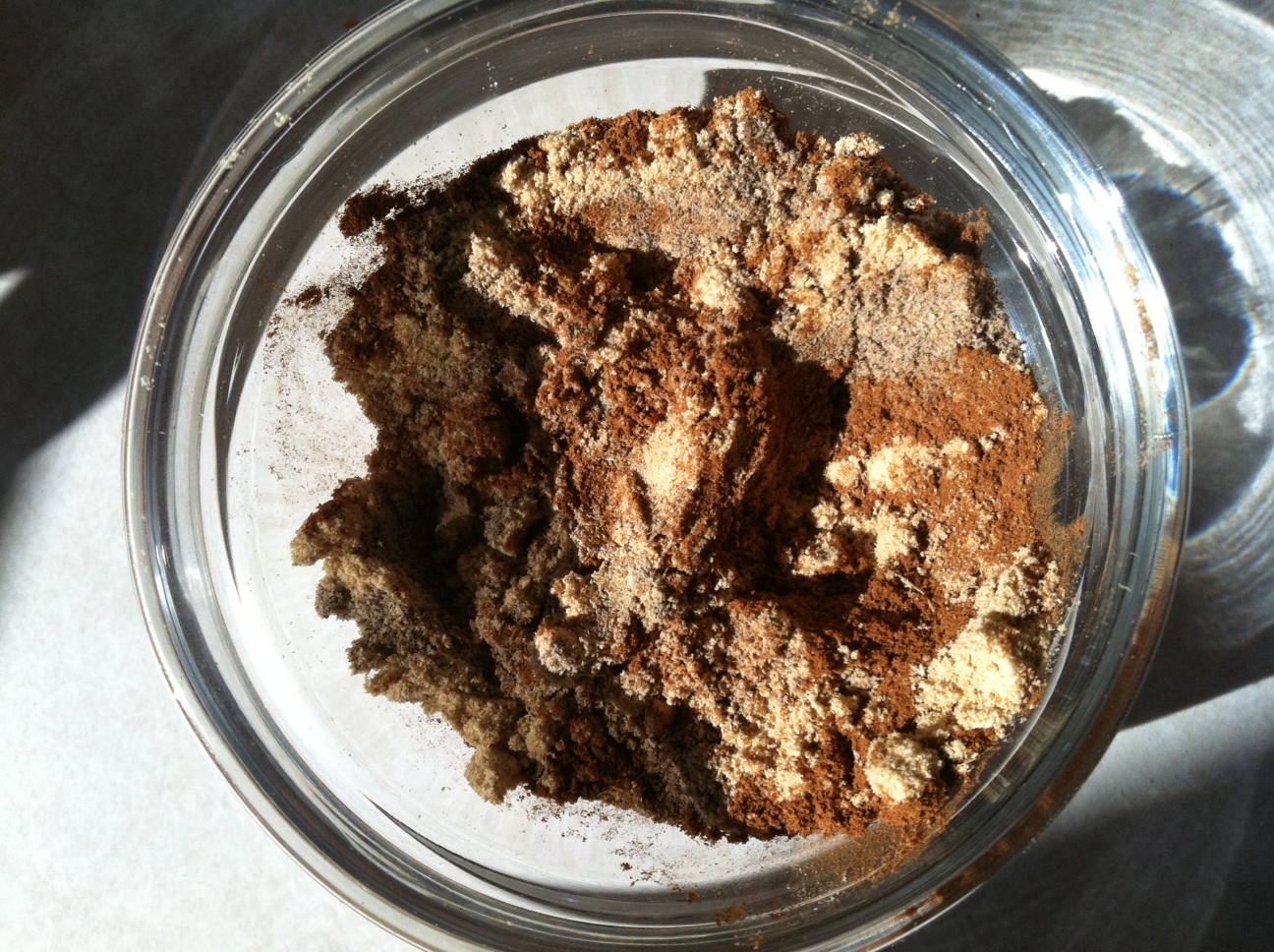2. In a small bowl, combine the spices and add to the flour, sugars, baking powder and baking soda. Whisk to combine.
