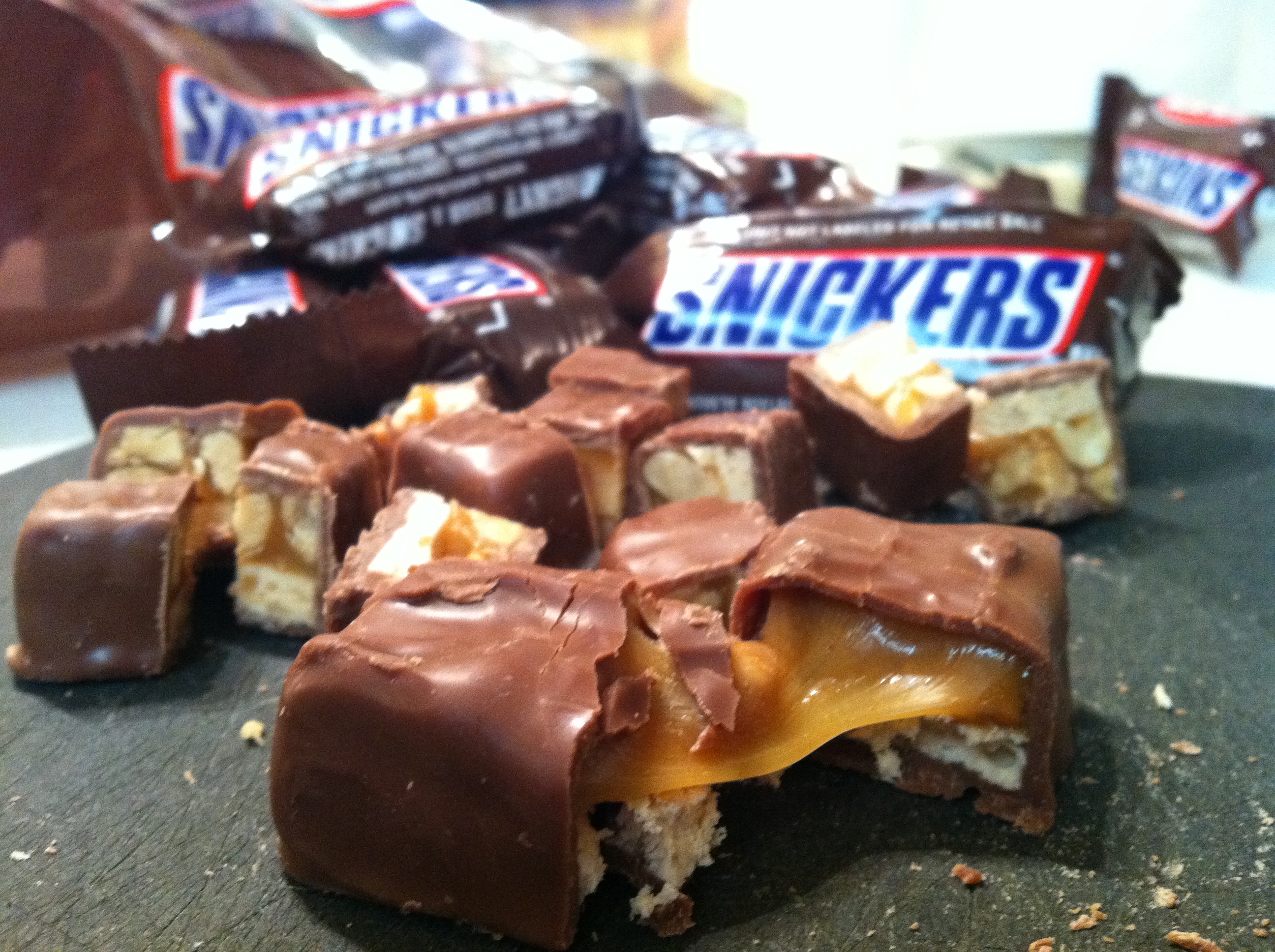 • Approximately 2 cups of Snickers, chopped and frozen