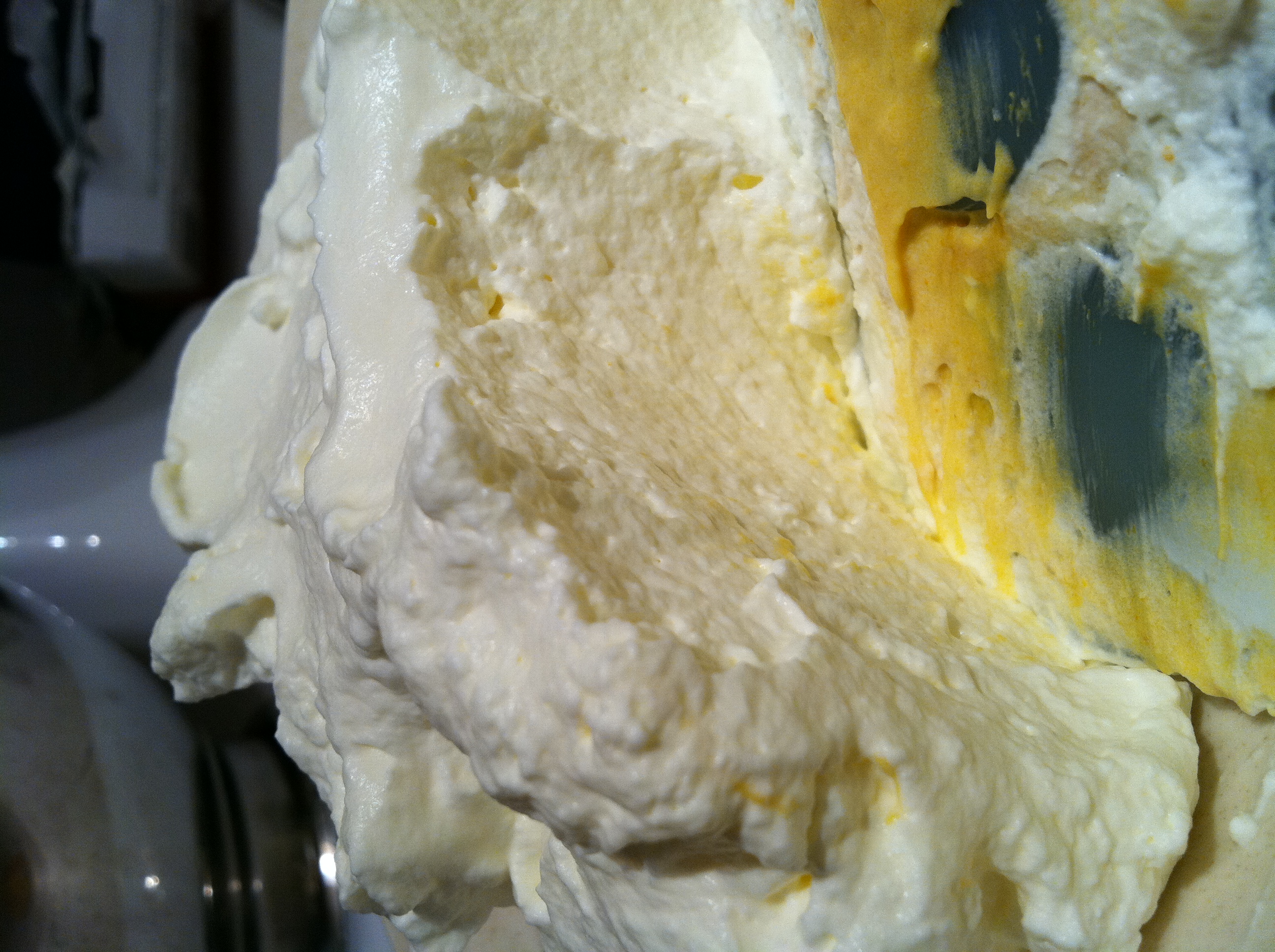1. Beat the heavy whipping cream with an electric mixer with a whisk attachment. Once the cream begins to form stiff peaks, remove it from the bowl and set aside.