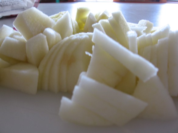 - 4-5 medium apples, peeled, cored and chopped into quarter-sized pieces