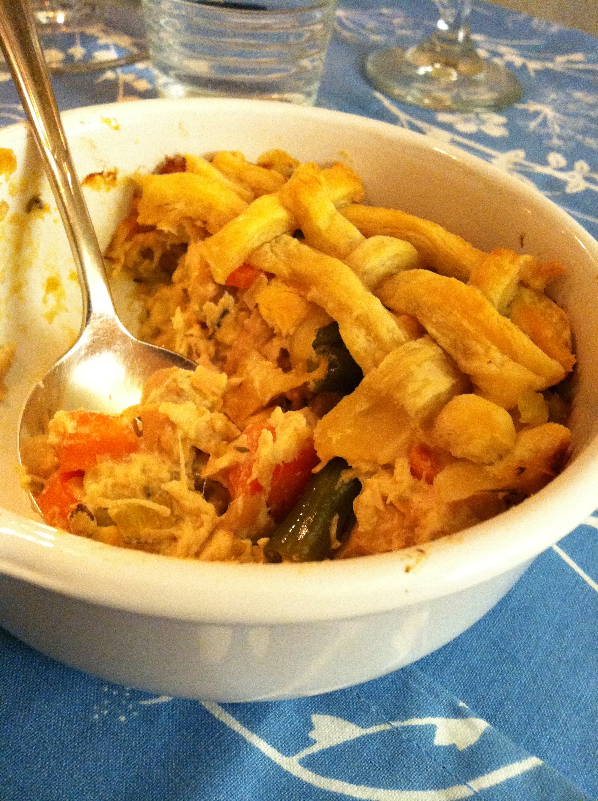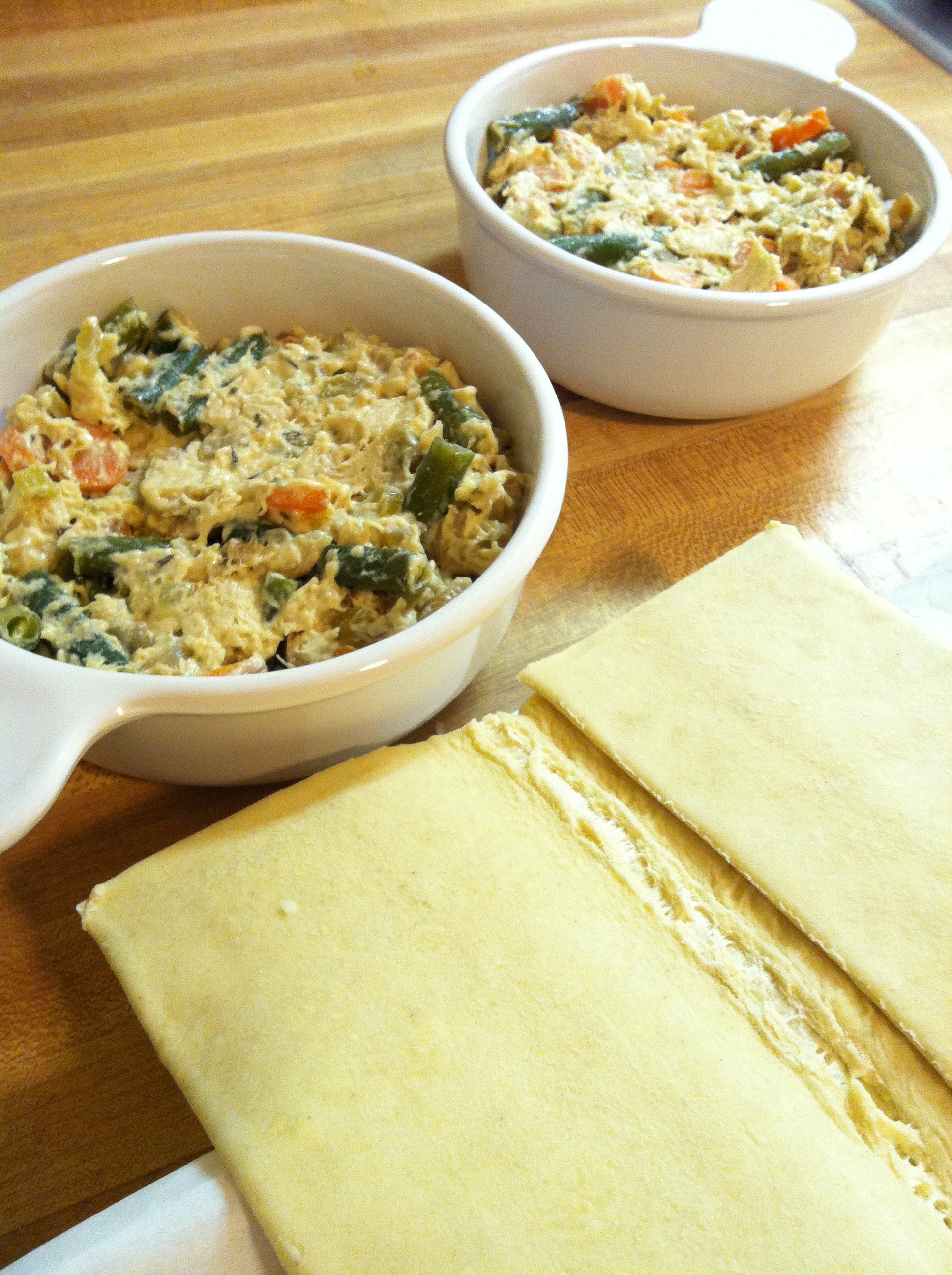 Then it hit me. A perfect excuse to use these adorable single serving dishes I stole rescued from my parents’ storage unit and empty out my fridge all at the same time. Chicken pot pies! But these are not just any pies. Oh no, this is a new year, and my waistline informed me I had better step my health game up, so I turned to my loyal companion, Cooking Light, and used a modified version of their recipe to empty my fridge and fill my tummy.