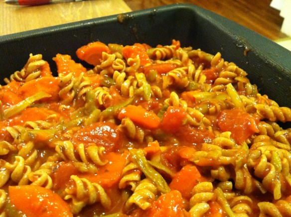 We had some amazingly delicious entries, which you can peruse here, but I went for a veggie-loaded, tummy-warming pasta bake!