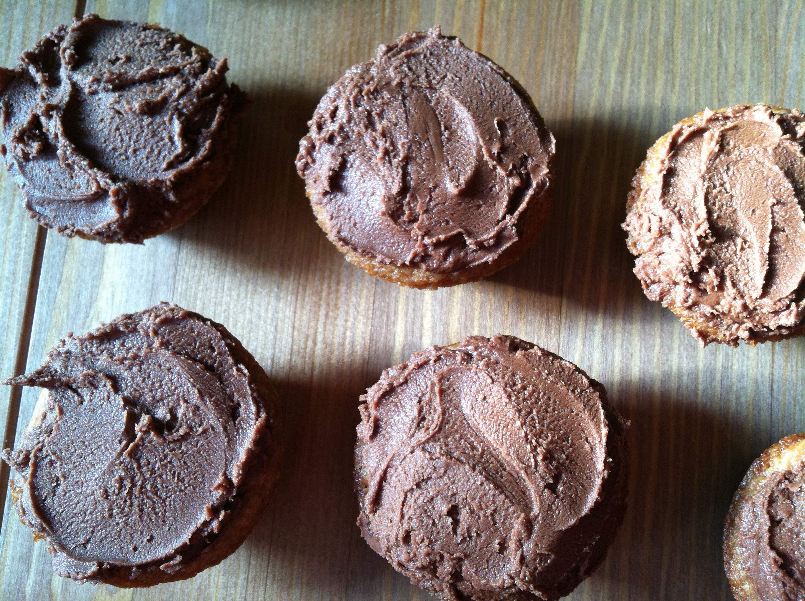 Determined to find a more creative way to use that Nutella besides the spoon-to-mouth technique, I whipped up some banana cupcakes that just screamed for Nutella buttercream. Problem solved, right?