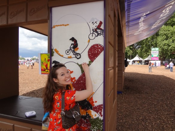 That’s me, helping complete an Olympic-themed Wine Gum mosaic in Hyde Park. And yes, they have wine flavored gummies here.