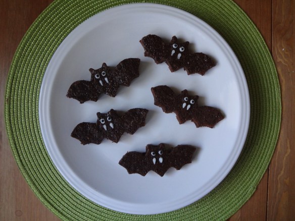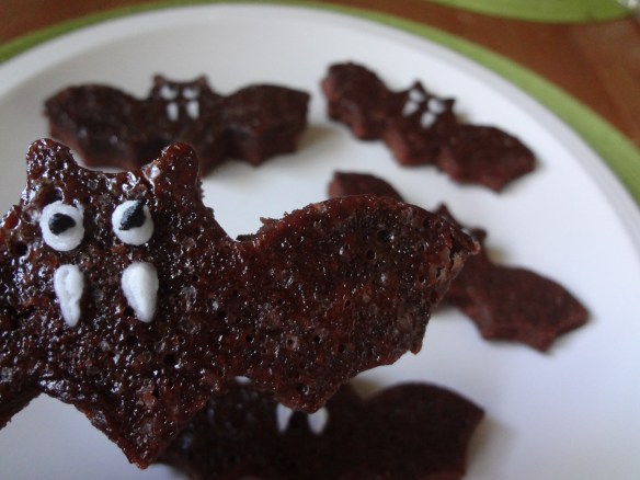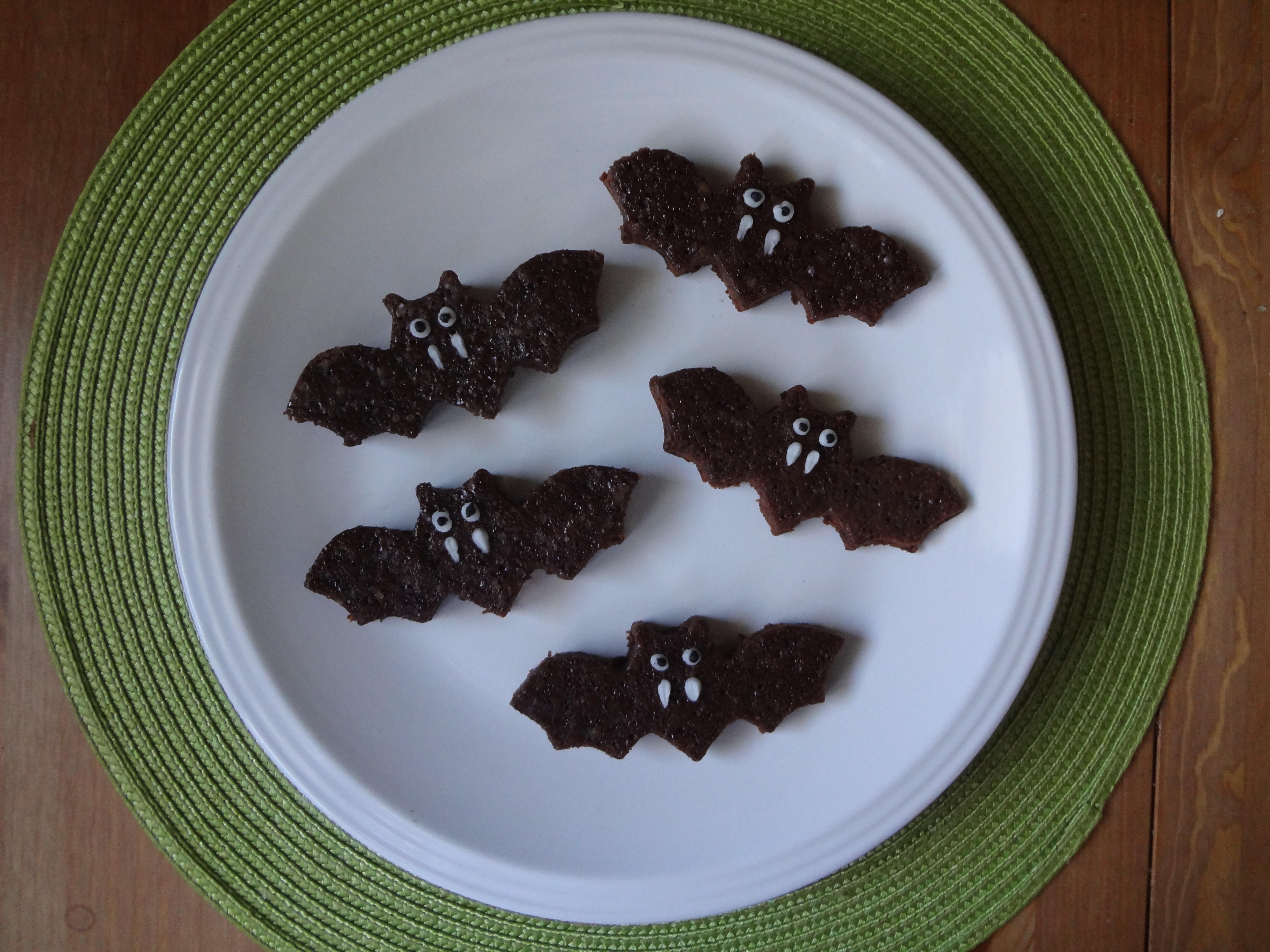 This, my friends, is where the bat brownies come in.They’ve already passed the litmus test of my coworkers, one of whom was driving out of the parking lot while I walked into the building carrying my plate of bat brownies, and started to honk her horn, roll down her window, and scream OMG ARE THOSE TREATS DID YOU BRING TREATS CAN I HAVE ONE!?