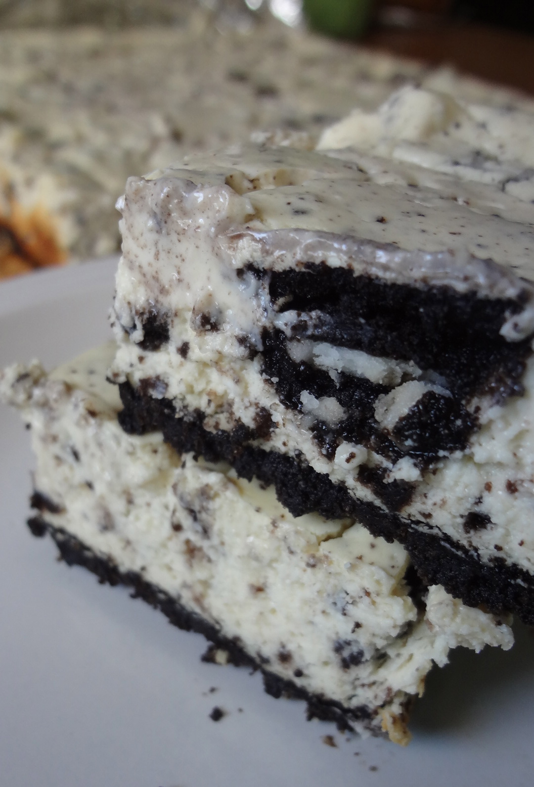 4. Put the remaining 1/3 of your Oreos in the food processor, and give it a few quick pulses to break them into large chunks. Fold the chopped Oreos into the cheesecake batter.