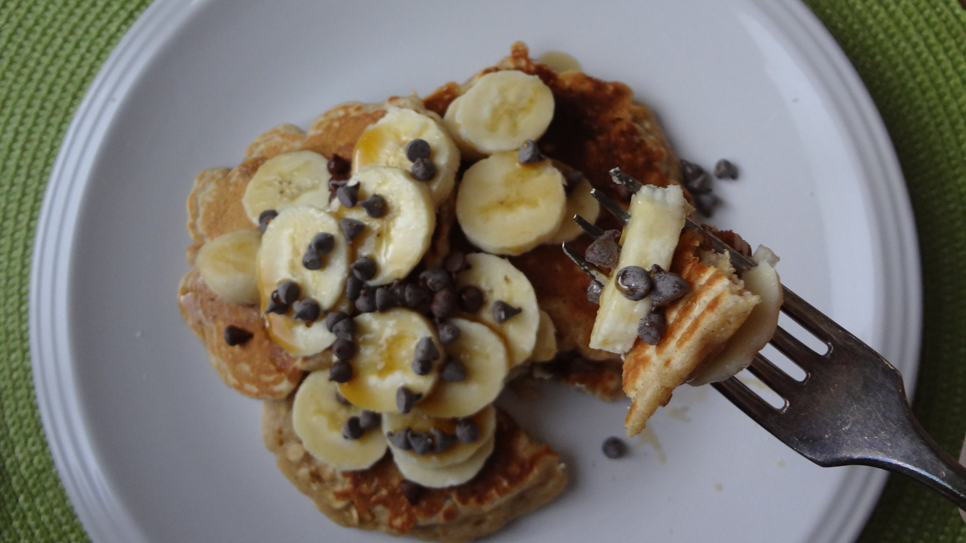So when I found this recipe for oatmeal pancakes I was super excited. Gone was my guilt for wanting fluffy, syrupy pancakes every day of the week.