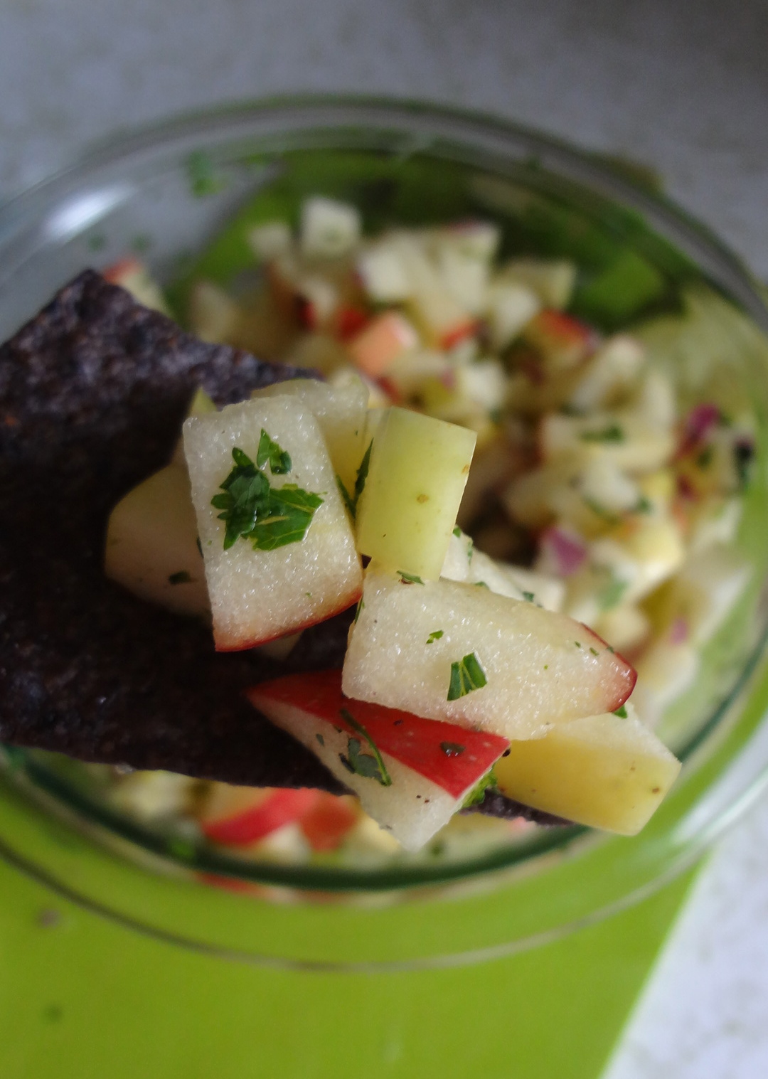 Which for some reason seems to be tortilla chips. And apples. Like, a vast majority of the time, I have those things on hand. So it’s about time I figured out a more satisfying use for those than blindly munching away.