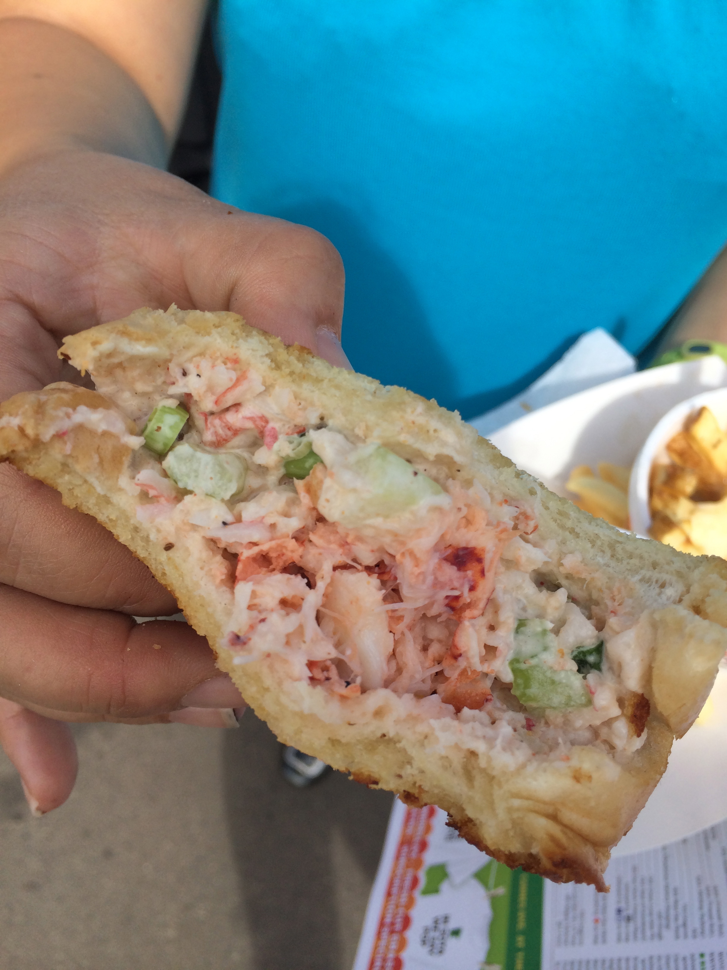 The Caribbean-style lobster roll from Cafe Caribe was an interesting one. The one we sampled in the morning had no spice, nothing to help us figure out why this lobster roll was “Caribbean” as opposed to just a lobster roll. It was a good lobster roll (maybe a tad light on the lobster), but nothing Caribbean about it. Later that night, however, we did get some spice in the roll, so maybe it was just a mishap on their part. Or maybe they thing real Caribbean things are too spicy for a Minnesotan’s breakfast?