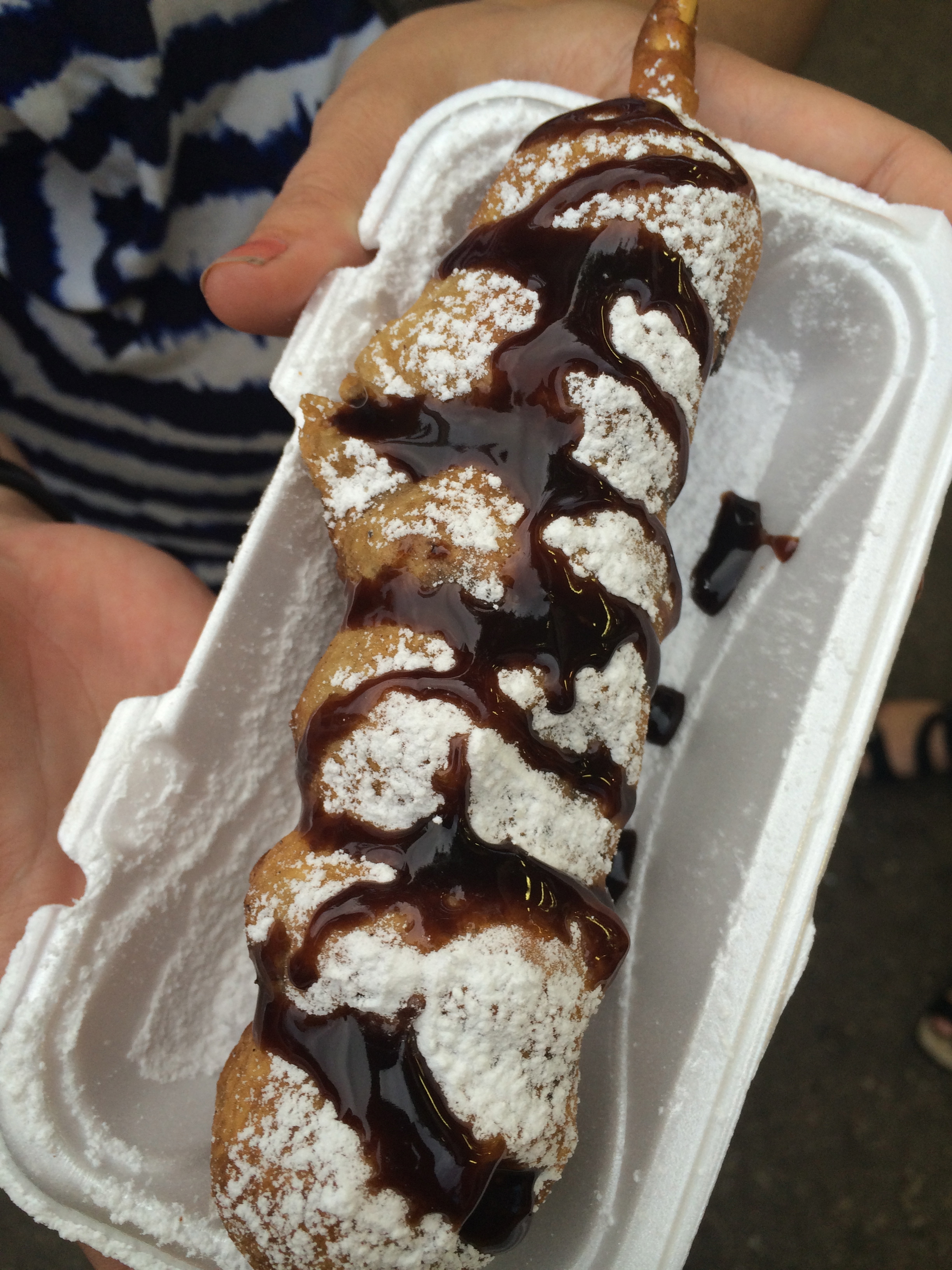 These deep-fried balls of peanut butter and chocolate are a new staple for me at the fair. They are a gooey mass of chocolate/peanut butter surrounded by the soft, chewy texture of fried dough. A. Maze. Ing. But be warned, this is not a solo event, split it with at least 3 people or you won’t be eating anything else for a week – these babies are rich! You can find them at the same place you get deep-fried Twinkies, right between the two Spaghetti Eddie’s.