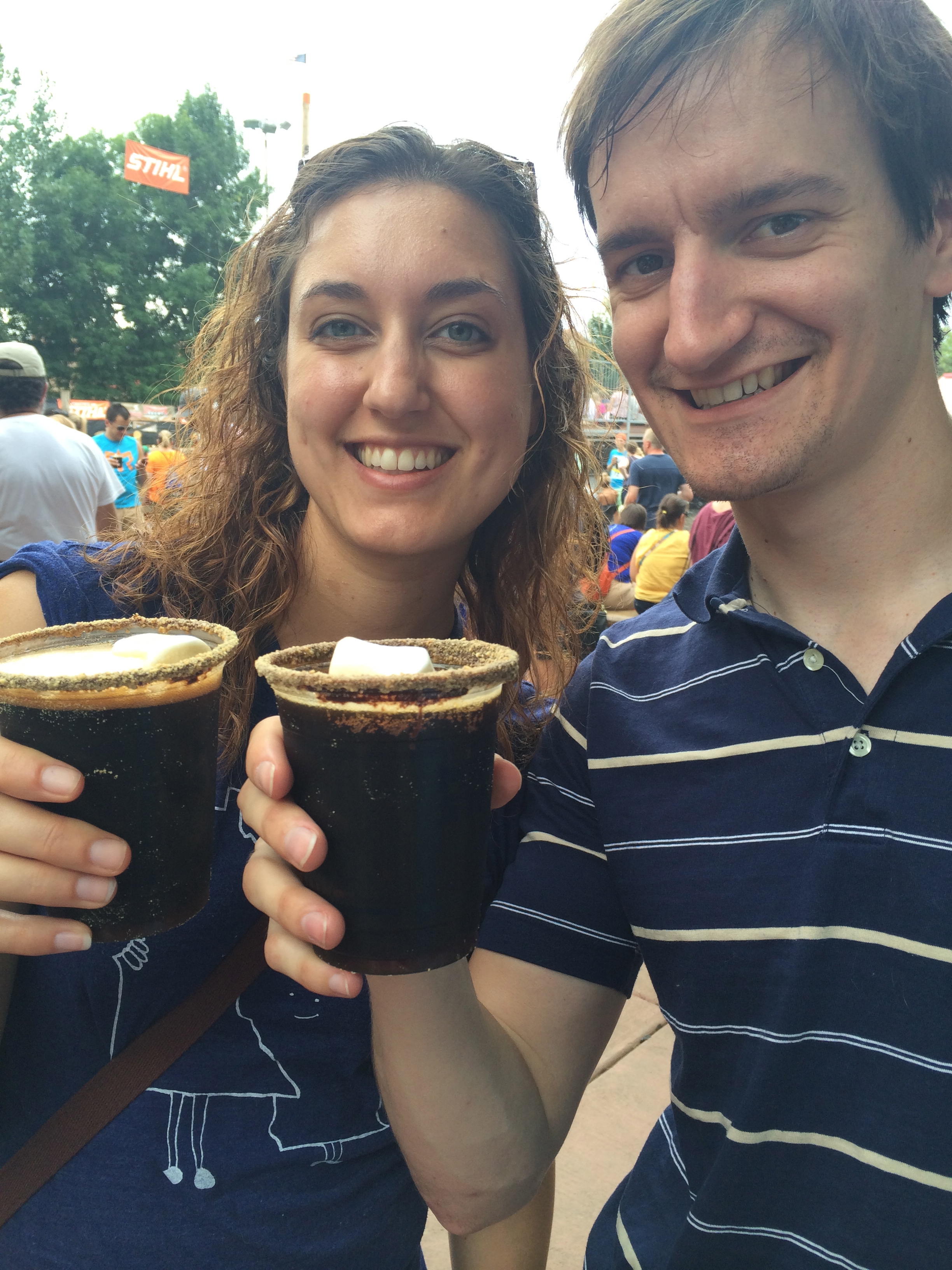 Let’s talk about beer now. We’ve had a good amount of fried foods, and we really need something to cut the grease. I’m not a beer drinker, but I did have a chance to sample the S’mores beer from Giggles Campfire Grill. I was really hoping this beer wouldn’t taste like beer (since I don’t like beer) but more like an actual s’more. It didn’t. It was a super dark chocolate stout with a very bitter after taste. The presentation was adorable though, the glass is rimmed with chocolate and graham cracker crumbs, and a marshmallow floats in the brew.