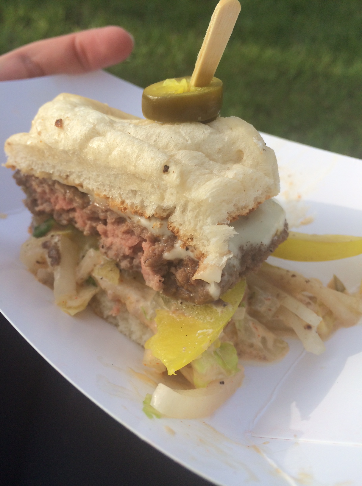 I really enjoyed burger. It was a mess to eat, but I thought the flavors were spot on. It featured grass fed beef, american cheese, chopped lettuce, picked green tomatoes, onions, and paddy sauce. For being that weird person who doesn’t like pickles, I do enjoy other foods that are pickled, so the green tomatoes added a nice tang. The sauce was sweet, the bun was soft, and the beef was well cooked. Probably my third favorite of the whole day, and was the judge’s choice for best burger.