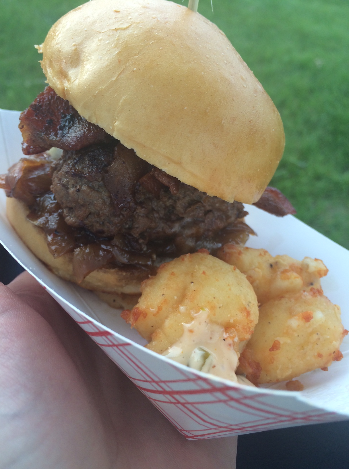 I didn’t read the description before hopping in line, and it was a longer wait, so when I was finally mere feet from victory and I realized this baby had blue cheese on it, I started to panic. Had I shuffled along in line all this time just to have my delicate taste buds assaulted by blue cheese? Thankfully, Kyle convinced me to keep my place in line, and at least give it a try. His faith was rewarded with an incredible concoction of Peterson Farms Limousin beef stuffed with AmaBlu cheese, bacon marmalade and ox tail ragu. It was sweet, salty, and incredible. I have never been to FireLake Grill before, but if they can make me like blue cheese, they can expect to see me again very soon.